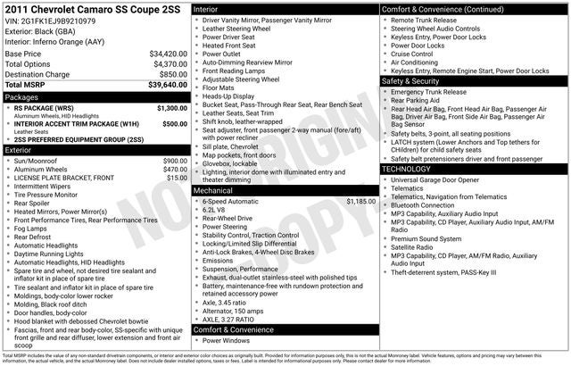 Whether cruising down the highway or carving through twisty roads, this 2011 Chevrolet Camaro SS 2SS will thrill you with its dynamic performance and head-turning style. Experience the power and passion of Chevrolet's iconic muscle car for yourself. Schedule a test drive today and discover why the Camaro is a true American legend.