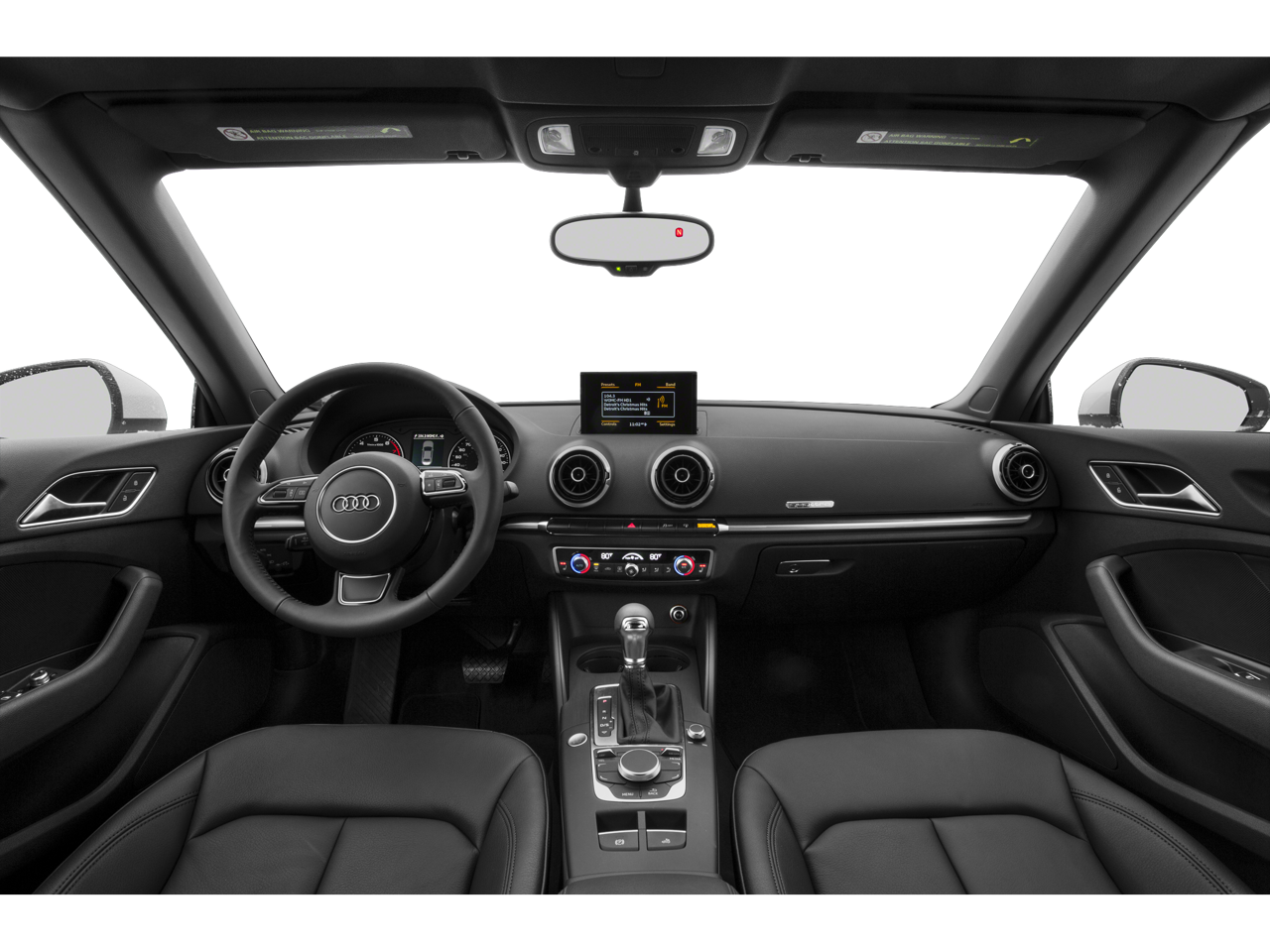 - Radio: Audi Concert AM/FM/SiriusXM w/CD Player -inc: MP3 capability, auxiliary input jack, 12-station presets, speed-dependent volume control, Audi sound system w/9 speakers including front center speaker, subwoofer in rear, 140 watts, 6-channel amplifier, BluetoothĀ® streaming audio, monochrome driver information system, HD Radio technology, SD card single slot and SiriusXM satellite radio w/90-day trial subscription