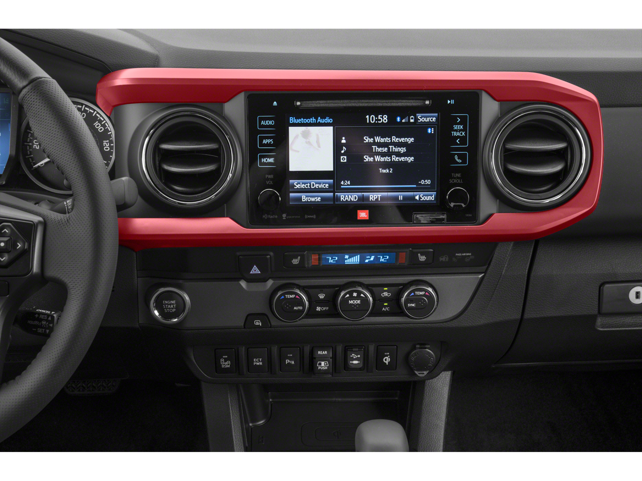 - Radio: Entune Premium w/AM/FM/CD/Nav/App Suite -inc: 6 speakers, 7" high-resolution touch-screen display w/split screen, auxiliary port, USB media port, Siri eyes free, advanced voice recognition, Bluetooth® hands-free phone capability, phone book access and music streaming, cache radio, HD Radio, HD predictive traffic and doppler weather overlay and SiriusXM satellite radio w/complimentary SiriusXM All Access 90-day trial subscription included, Entune App Suite, Destination Search, iHeartRadio, MovieTickets.com, OpenTable, Pandora, Yelp, Facebook Places and Slacker Radio