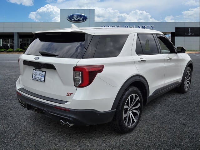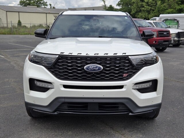 Explorer ST, 4D Sport Utility, 3.0L EcoBoost V6, 10-Speed Automatic, 4WD, White Metallic, Ebony Leather, 10.1 LCD Capacitive Portrait Touchscreen, 110V/150W AC Power Outlet, 2 Additional Speakers, 20 Machined Aluminum w/Painted Pockets Wheels, 360-Degree Camera w/Split View, 3rd row seats: bench, 4-Wheel Disc Brakes, 6 Speakers, ABS brakes, Active Park Assist 2.0, Air Conditioning, Alloy wheels, AM/FM radio: SiriusXM, AM/FM Stereo, Auto High-beam Headlights, Auto-Dimming Rearview Mirror (Interior), Automatic temperature control, Brake assist, Bumpers: body-color, Cargo Area Management System, Compass, Delay-off headlights, Driver door bin, Driver vanity mirror, Dual front impact airbags, Dual front side impact airbags, Electronic Stability Control, Emergency communication system: SYNC 3 911 Assist, Equipment Group 401A, Evasive Steering Assist, Exterior Parking Camera Rear, Ford Co-Pilot360 Assist+, FordPass Connect, Forward Sensing System, Four wheel independent suspension, Front & Second Row Floor Liners (16B), Front anti-roll bar, Front Bucket Seats, Front Center Armrest, Front dual zone A/C, Front fog lights, Front License Plate Bracket, Front Rain-Sensing Wipers, Front reading lights, Fully automatic headlights, Hands-Free Foot-Activated Liftgate, Heated door mirrors, Heated front seats, Heated steering wheel, Illuminated entry, Intelligent Adaptive Cruise Control, Knee airbag, Leather Htd/Ventilated Sport Captain's Chairs, Leather steering wheel, Low tire pressure warning, Memory Driver's Seat, Occupant sensing airbag, Outside temperature display, Overhead airbag, Overhead console, Panic alarm, Passenger door bin, Passenger vanity mirror, Performance Front & Rear Brakes, Power door mirrors, Power driver seat, Power Liftgate, Power passenger seat, Power steering, Power Tilt/Telescoping Steering Column, Power windows, Premium Technology Package, Radio: B&O Sound System by Bang & Olufsen, Rear air conditioning, Rear anti-roll bar, Rear reading lights, Rear window defroster, Rear window wiper, Remote keyless entry, Reverse Brake Assist, Second Row Heated Seats, Security system, SelectShift Capability w/Paddle Shifters, Sideview Mirrors w/Gloss Black Caps, Speed control, Speed Sign Recognition, Speed-sensing steering, Speed-Sensitive Wipers, Split folding rear seat, Spoiler, Sport steering wheel, ST High Package, ST Street Pack, Steering wheel mounted audio controls, SYNC 3 Communications & Entertainment System, SYNC 3/Apple CarPlay/Android Auto, Tachometer, Telescoping steering wheel, Third Row PowerFold (Folds Flat), Tilt steering wheel, Traction control, Trip computer, Twin Panel Moonroof, Universal Garage Door Opener (UGDO), Variably intermittent wipers, Voice-Activated Touchscreen Navigation System, Wheels: 21 Aluminum, Wireless Charging Pad.