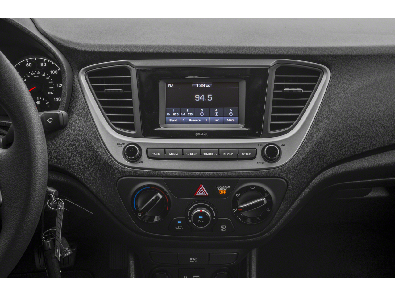 - Radio: Audio AM/FM -inc: 4 speakers, 5" color touchscreen, Apple Siri Eyes-Free interface, smartphone/USB and MP3 auxiliary input jacks, steering-wheel-mounted audio controls and Bluetooth® hands-free phone system