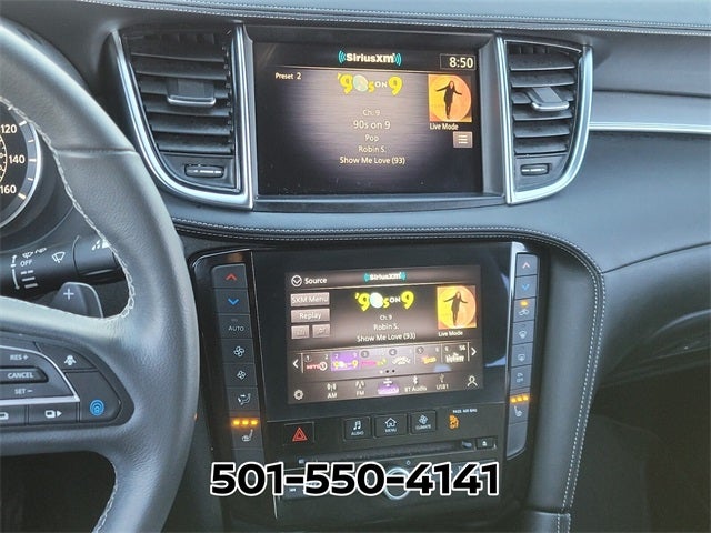 - Radio: AM/FM/CD Audio System -inc: 6 speakers, 4 USB connection ports, Apple CarPlay and Android Auto, dual display system w/upper 8" and lower 7" HD touch screens, INFINITI voice recognition, HD Radio technology, SiriusXM radio w/advanced audio features w/3-month complimentary trial, streaming audio via Bluetooth®, Bluetooth® hands-free phone system, Siri eyes free, hands-free text messaging assistant, active noise cancellation, WiFi hotspot, automatic collision notification and emergency call